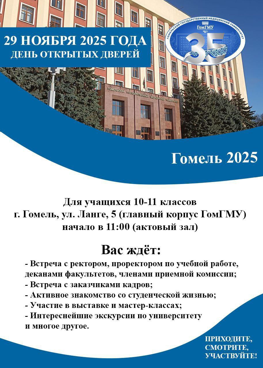 29 ноября 2025 года в учреждении образования «Гомельский государственный медицинский университет» пройдёт День открытых дверей! #профориентация
